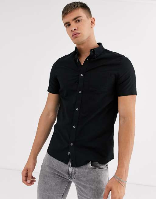 Burton Menswear short sleeve oxford shirt in black