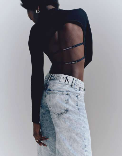 Calvin Klein Jeans back strap long sleeve top in black