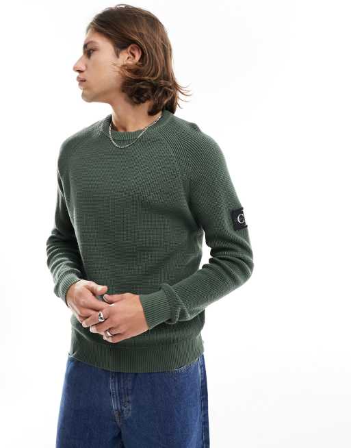 Calvin Klein Jeans badge easy jumper in thyme green