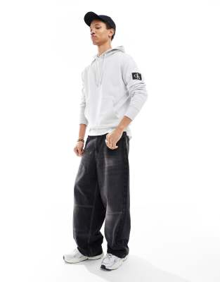 Calvin Klein Jeans badge hoodie in Grey