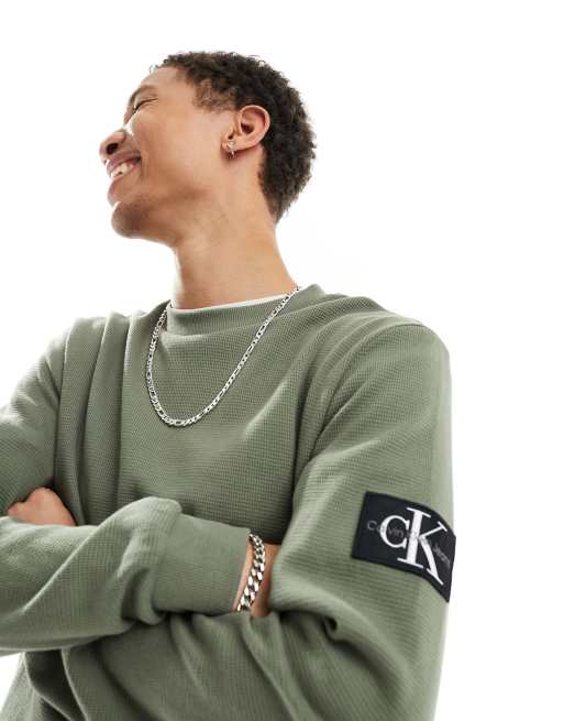 Calvin Klein Jeans badge logo waffle long sleeve t-shirt in olive
