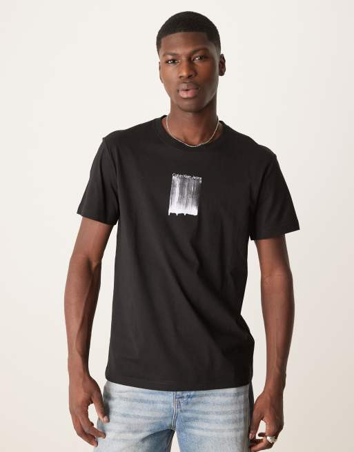 Calvin Klein Jeans brush stroke graphic t-shirt in black