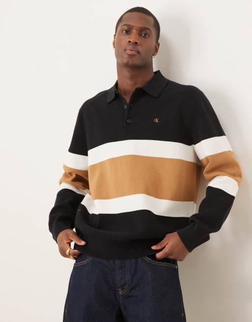 Calvin Klein Jeans collared knit 1/4 zip logo in black