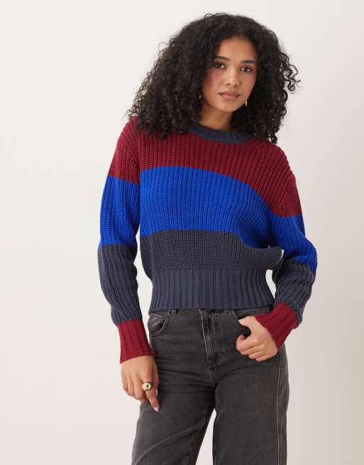 Calvin Klein Jeans colour block chunky knit jumper in burgundy/navy