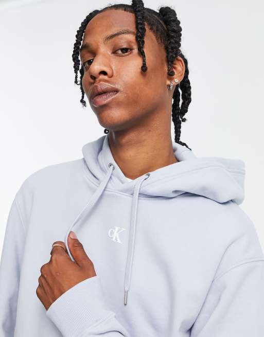 Calvin Klein Jeans cut off two tone logo hoodie in light blue