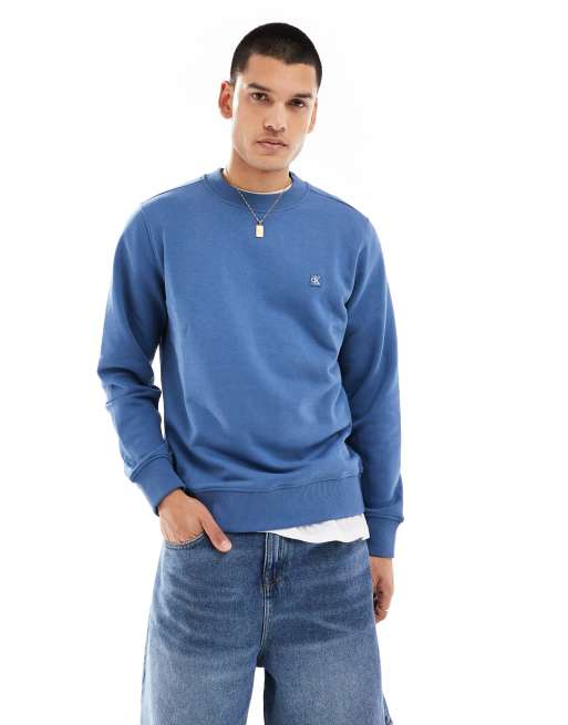 Calvin Klein Jeans embroidered logo crew neck sweatshirt in mid blue