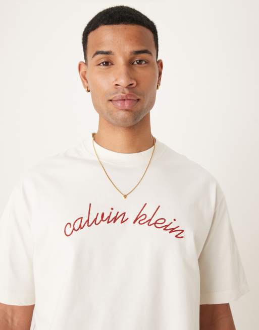 Calvin Klein Jeans embroidered logo t-shirt in off white