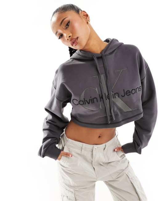 Calvin Klein Jeans hero monogram logo cropped hoodie in washed black
