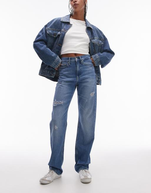 Calvin Klein Jeans high rise straight ripped jeans in light wash