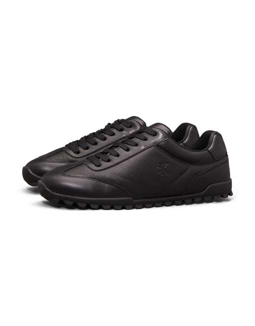 Calvin Klein Jeans Leather Low Profile Trainers in Triple Black