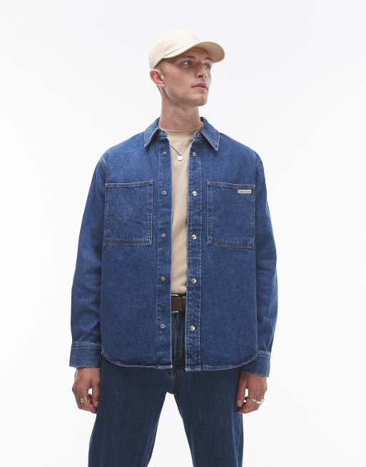 Calvin Klein Jeans Linear denim shirt in mid wash