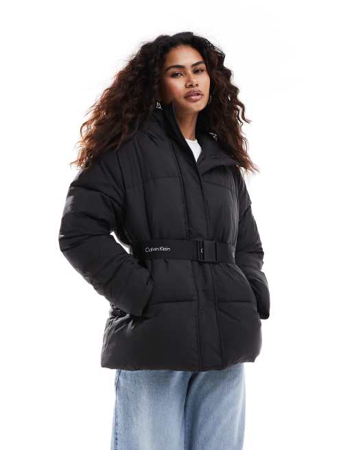 Calvin Klein Jeans logo belt puffer jacket in black