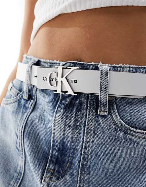 Calvin Klein Jeans monogram hardware belt in white