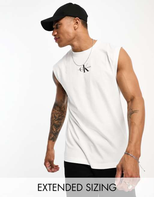Calvin Klein Jeans monogram logo sleeveless vest in white