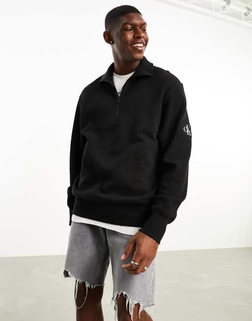 Calvin Klein Jeans monogram logo stencil crew neck sweatshirt in black