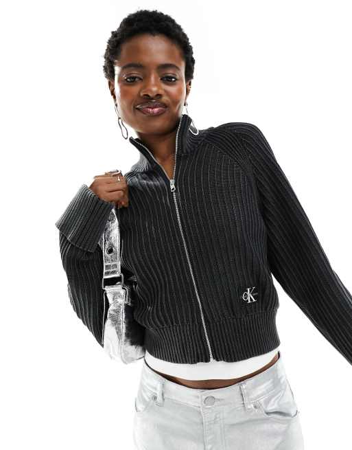 Calvin Klein Jeans monogram logo sweater cardigan in black