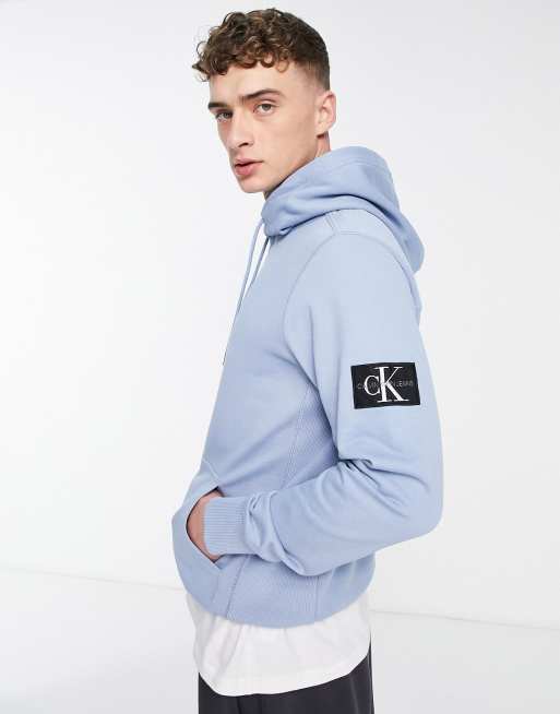 Calvin Klein Jeans monologo sleeve badge hoodie in light blue