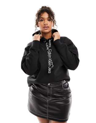 Calvin Klein Jeans Plus logo drawcord hoodie in black