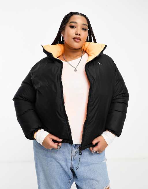 Calvin Klein Jeans Plus monologo reversible jacket in black/orange