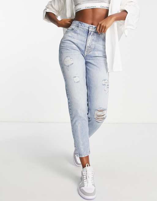 Calvin Klein Jeans ripped mom jean in light wash