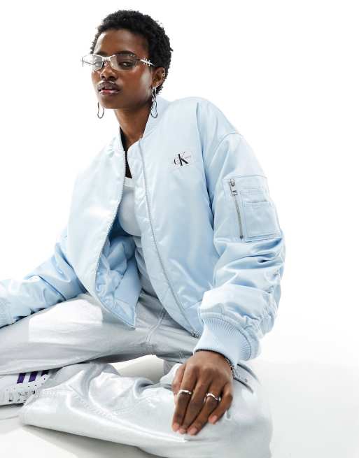 Calvin Klein Jeans satin badge logo bomber jacket in light blue