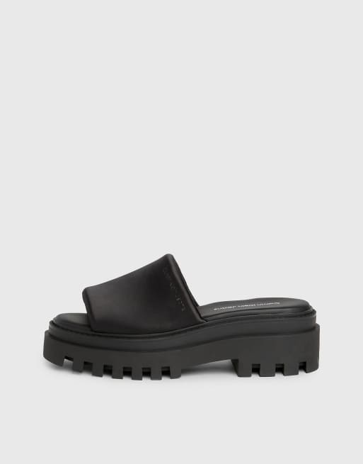 Calvin Klein Jeans Satin Platform Sandals in Ck Black
