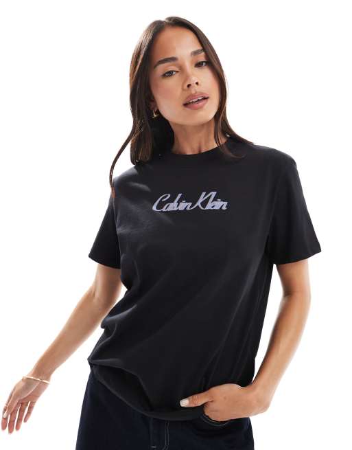 Calvin Klein Jeans script logo t-shirt in black