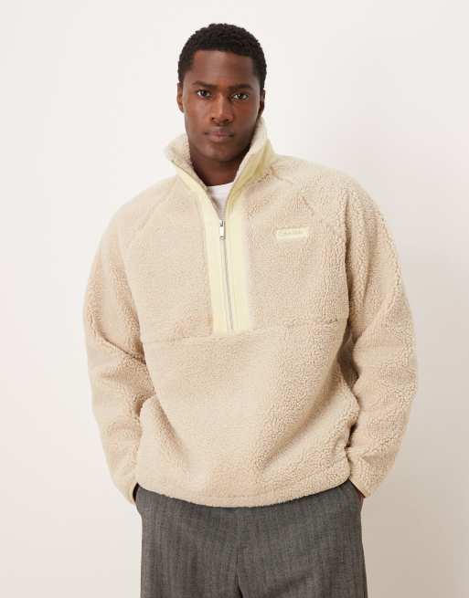 Calvin Klein Jeans sherpa quarter zip fleece in cream