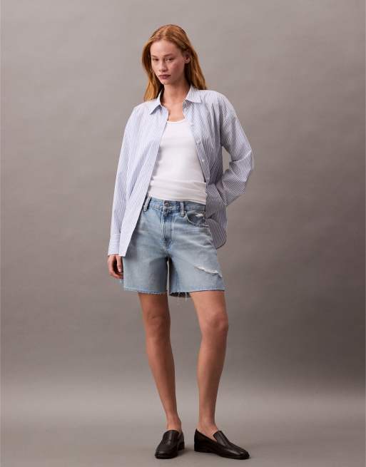 Calvin Klein Jeans signature 90s distressed denim shorts in light blue