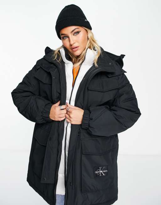 Calvin Klein Jeans technical hooded puffer jacket in black