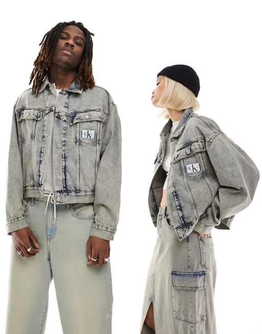Calvin Klein Jeans Unisex co-ord boxy denim jacket in mid wash