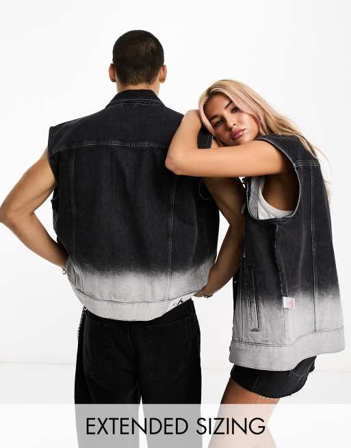 Calvin Klein Jeans Unisex oversized denim vest in black ombre dye - exclusive to ASOS
