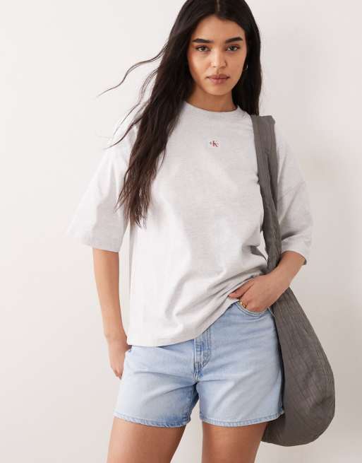 Calvin Klein Jeans woven label oversized t-shirt in light grey