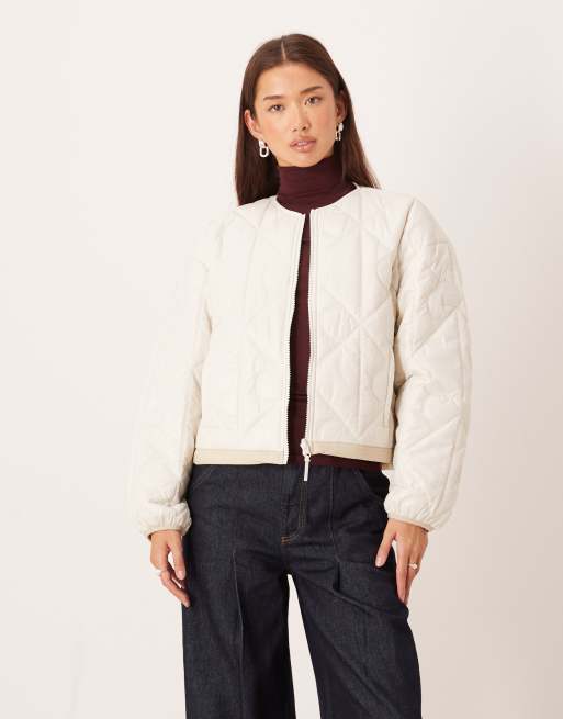 Calvin Klein logo quilted shine liner jacket in off white