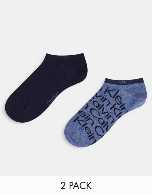 Calvin Klein 2 pack trainer socks in blue, navy with logo