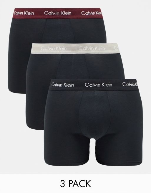 Calvin Klein 3-pack boxer briefs with coloured waistband in black