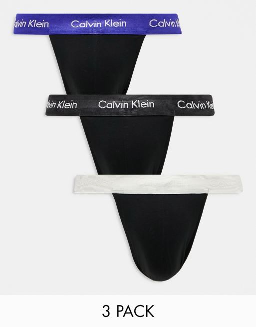 Calvin Klein 3-pack jockstraps in black with coloured waistband