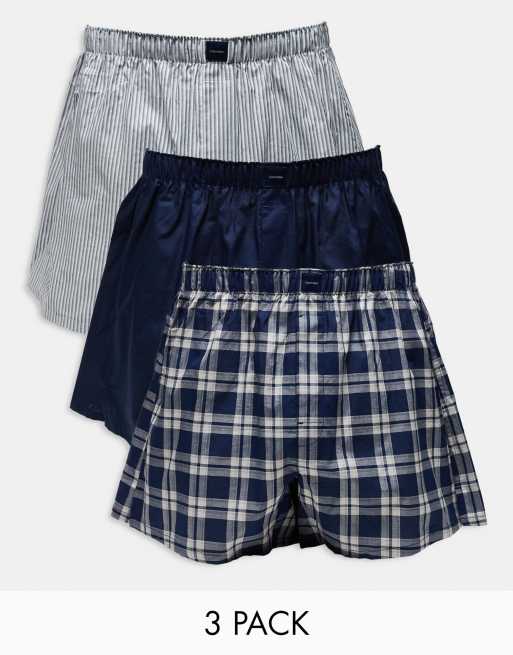 Calvin Klein Cotton Classics 3 pack boxer short in navy stripe/check/solid