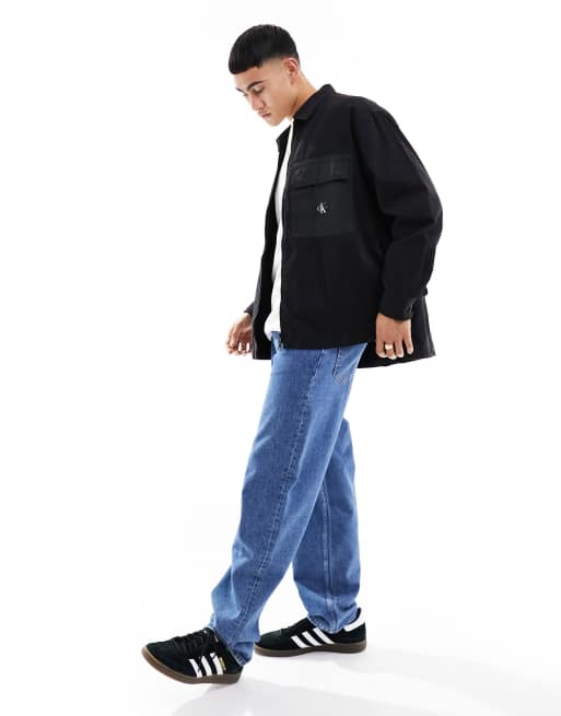 Calvin Klein Cotton Nylon Zip Up Shirt Jacket in black
