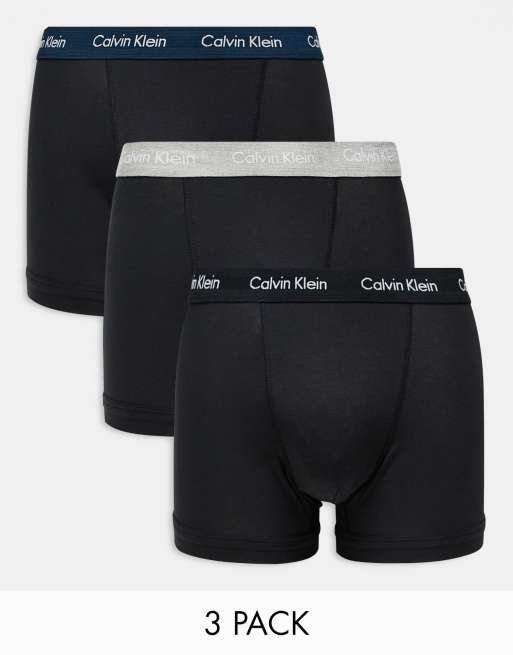 Calvin Klein Cotton Stretch 3 pack trunk with coloured waistbands in black