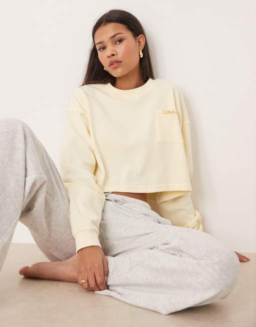 Calvin Klein cropped logo jersey sweatshirt in butter yellow