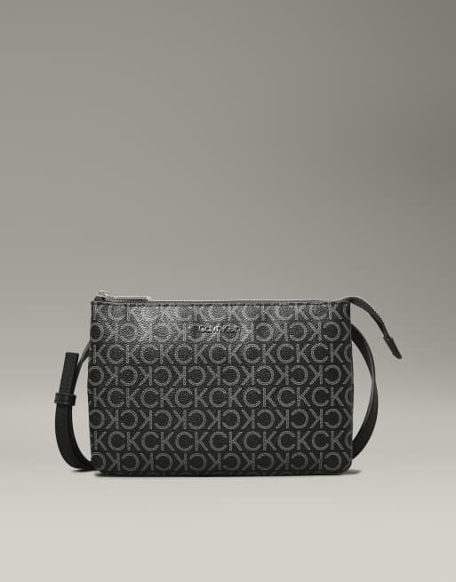 Calvin Klein cross body monogram logo bag in black/grey