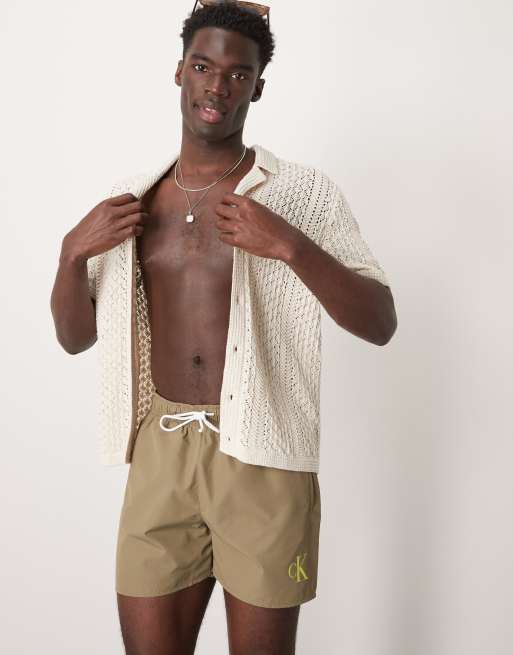 Calvin Klein drawstring logo swim shorts in olive green
