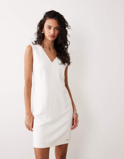 Calvin Klein heavy textured shine mini dress in off white