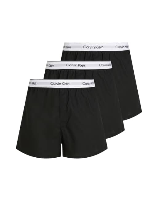 Calvin Klein Icon Cotton Stretch 3 pack relaxed boxers in black with white waistbands