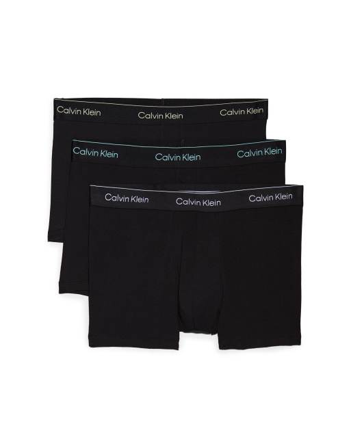 Calvin Klein Icon Cotton Stretch 3 pack trunks in black with colour logo waistbands