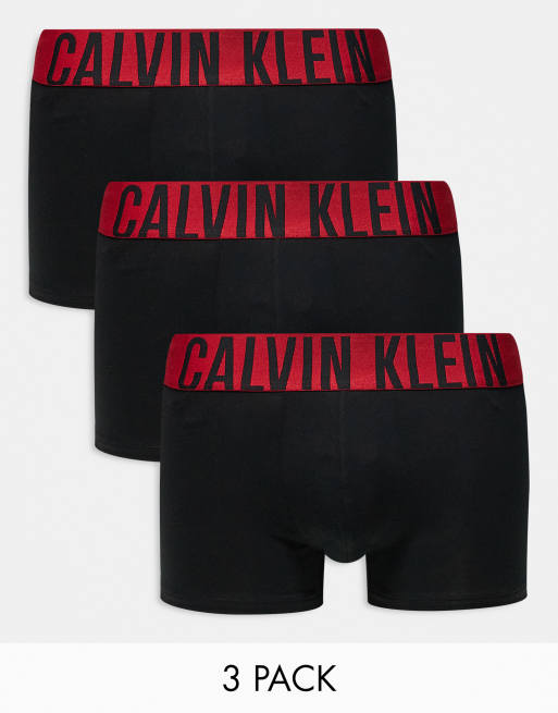 Calvin Klein Intense Power 3 pack trunk with red waistband in black