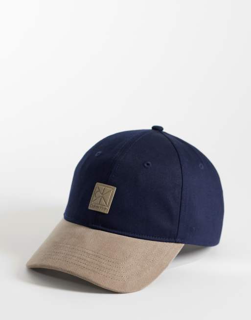 Calvin Klein Jeans mixed colour block cap in dark blue and beige