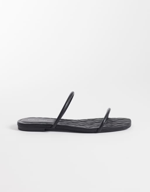 Calvin Klein Jeans quilted leather square toe flat sandal in black