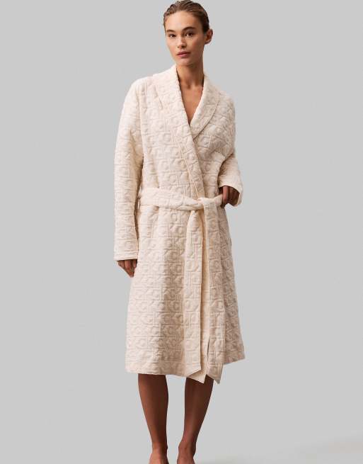 Calvin Klein Logo quilted bathrobe in ivory